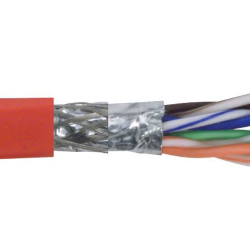 超5类SF/UTP线缆,铝箔编织双屏蔽,低烟无卤护套,4对26AWG多股导线,红,1000英尺(305米)